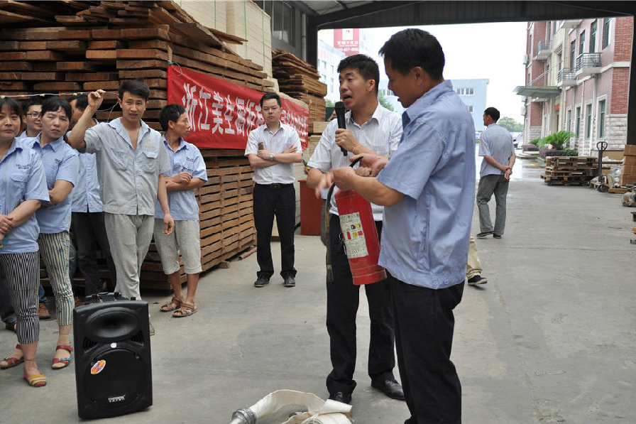 浙江美生櫥柜有限公司,即普瑞卡家居安全知識競賽在美生公司舉行,來自車間的幾十位員工在聽取了辦公室主任吳冬冬的安全消防知識后,玩的不亦樂乎。知識競賽包括幾個步驟:安全消防演習,滅火器的使用,安全知識傳單···